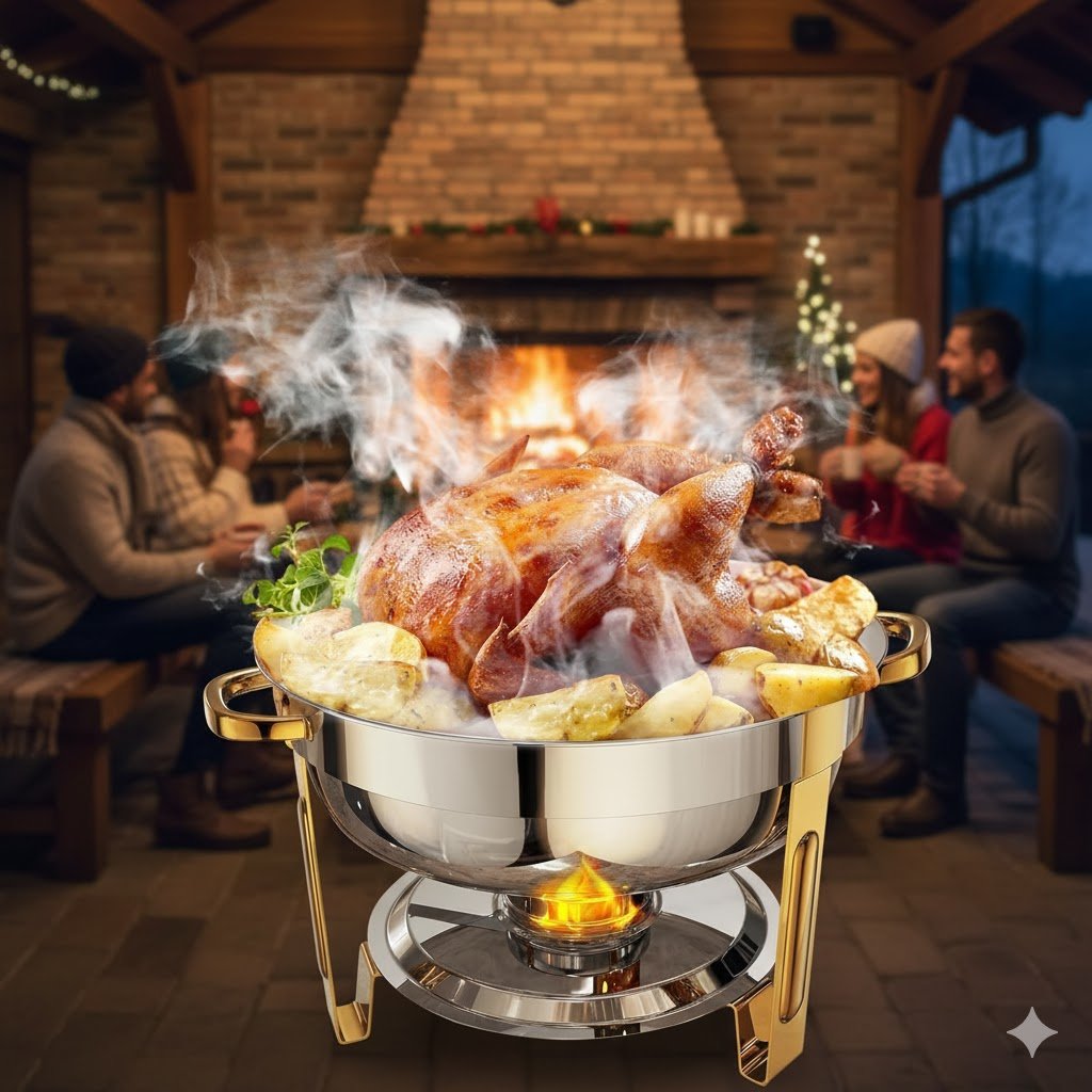 Outdoor BBQs and Picnics: The chafing fuel cans maintain warmth even outside.