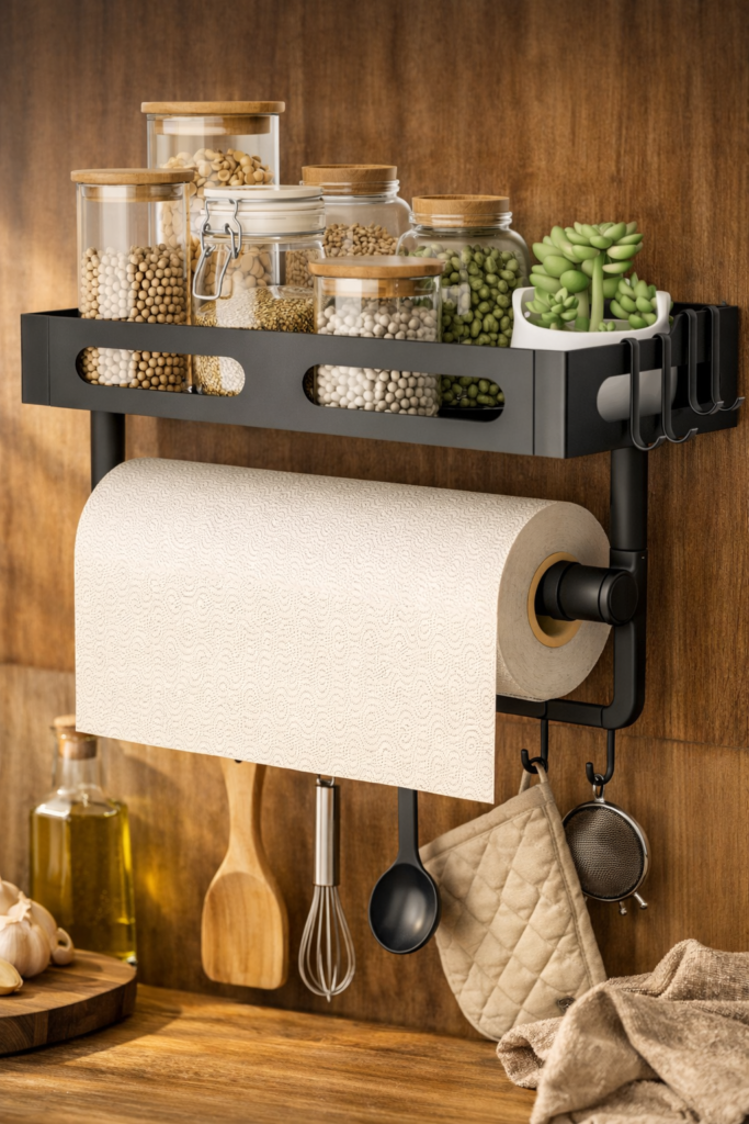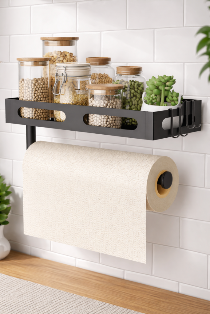 This isn’t just a paper towel holder—it’s a mini organization station.