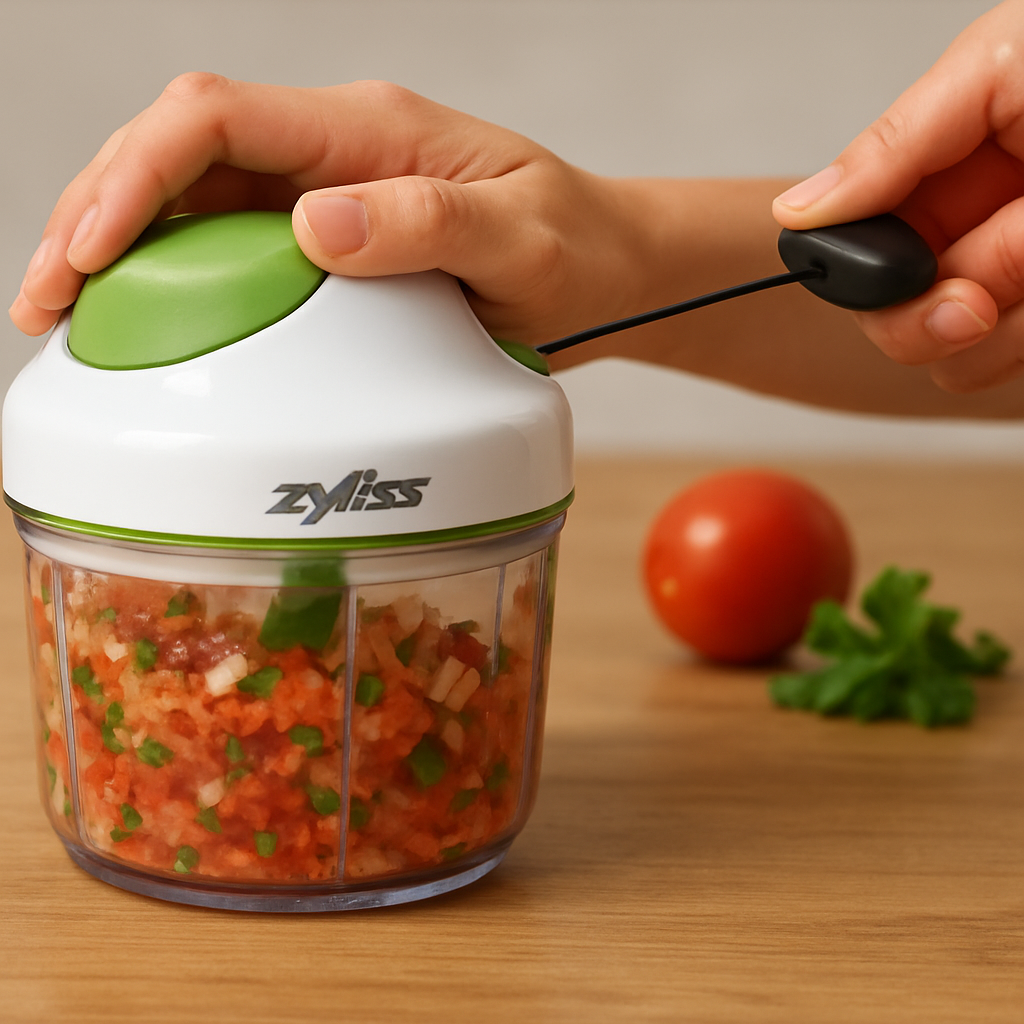 The main advantage of the zyliss easy pull food chopper lies in its simple pull-cord system. Each pull rotates the blades rapidly, giving you full control over texture—from coarse chunks to fine mince. This eliminates the need for knives and cutting boards, making prep faster, safer, and more consistent.